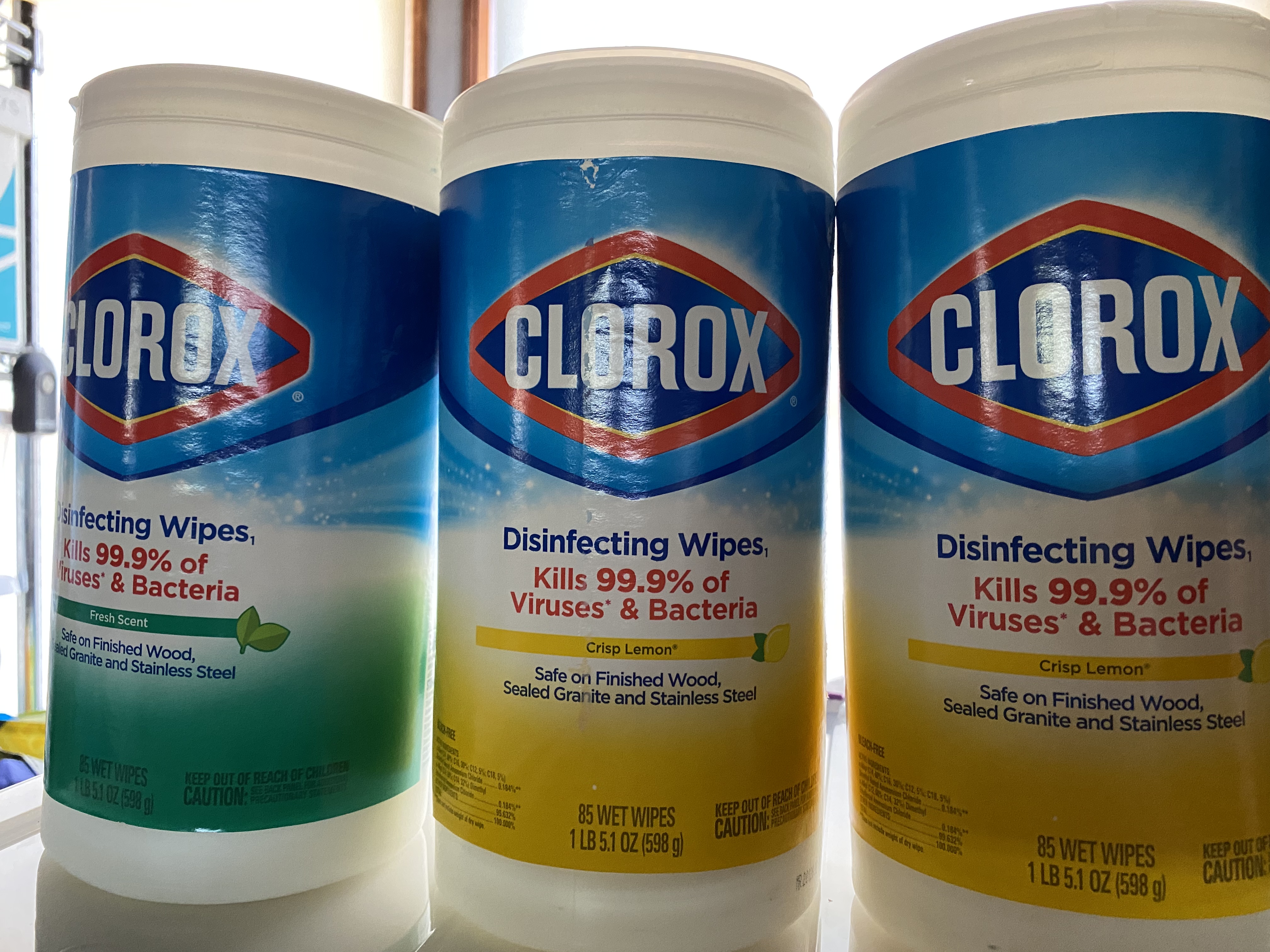 Clearly we bought too many clorox wipes in March 2020. There are still three containers left in my garage. There was so much unknown in those days, we wiped down everything that came in our house because we were afraid of surface transmission.